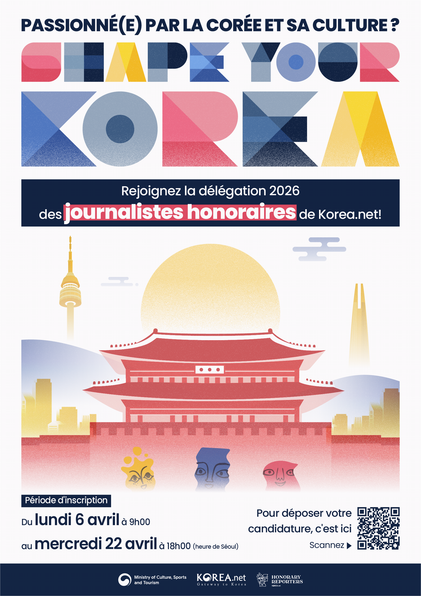 - Période de candidature : du 6 au 22 avril 2026 à 18h00 (heure de Séoul)
