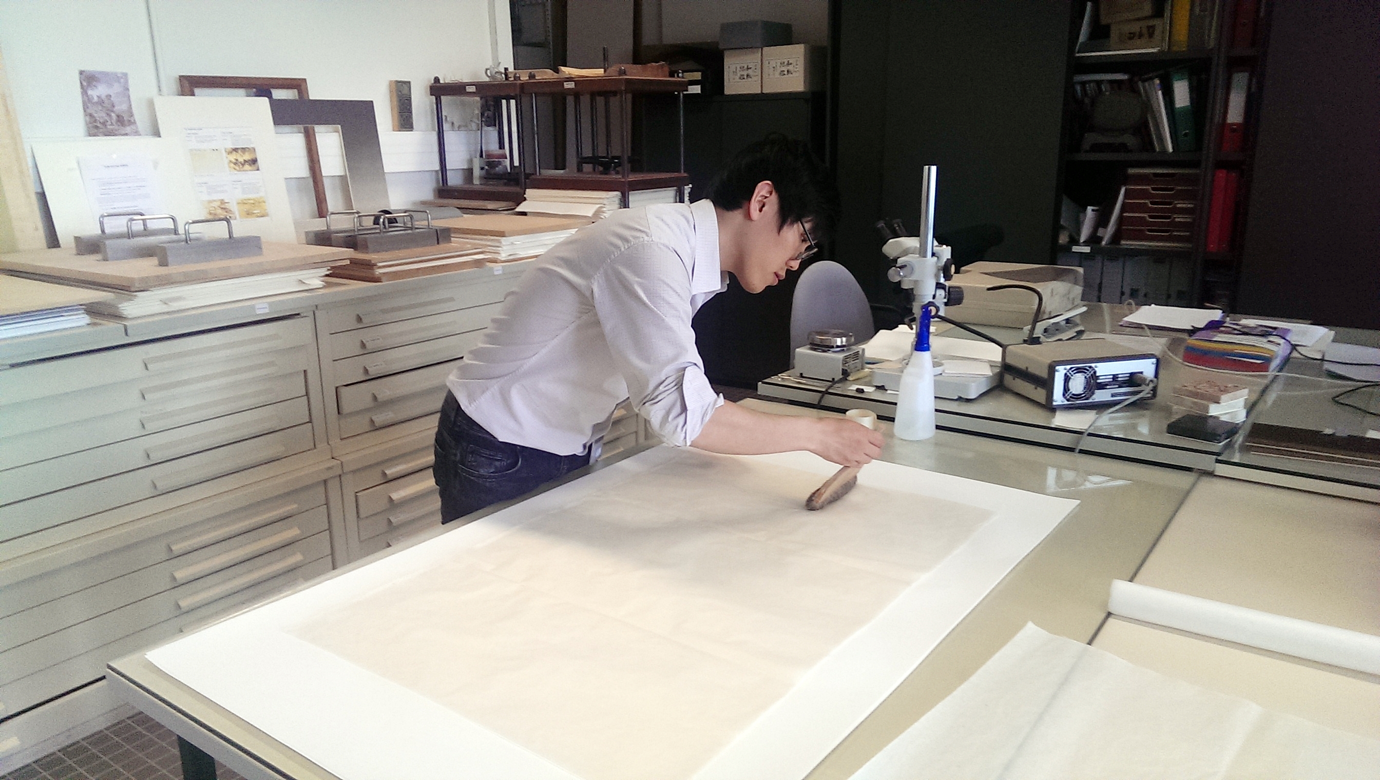 Kim Minjung, restaurateur d'œuvres d'art, s'est consacré à l'utilisation du hanji pour le projet du Louvre. Il a participé à l'ensemble du processus de restauration des œuvres, de la sélection du papier aux tests.